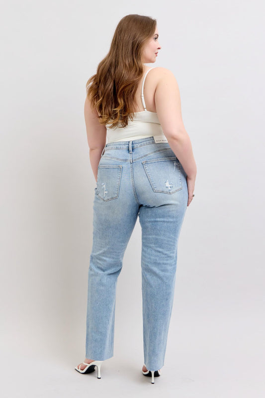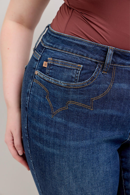 Tummy Control Vintage Wash Cut Hem Flare, Long/Plus